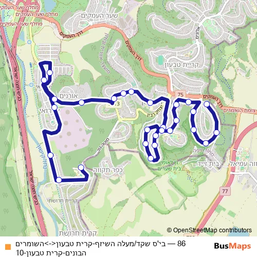 Click here to view the nearest 86 - בי'ס שקד/מעלה השיזף-קרית טבעון<->השומרים הבונים-קרית טבעון-10 bus stop.