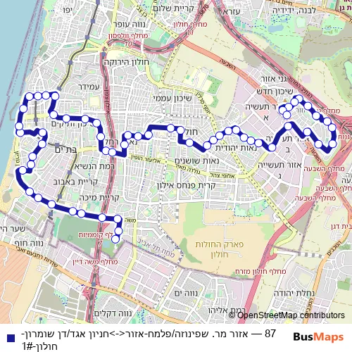 Bus 87 - אזור מר. שפינוזה/פלמח-אזור<->חניון אגד/דן שומרון-חולון-1# in Tel Aviv: Stops & Timetable