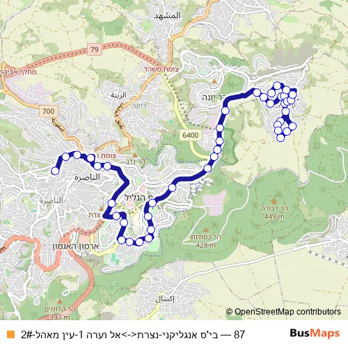Bus 87 - בי'ס אנגליקני-נצרת<->אל וערה 1-עין מאהל-2# in Nazareth: Stops & Timetable