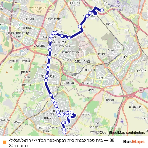 Bus 88 - בית ספר לבנות בית רבקה-כפר חב'ד<->הרצל/הגליל-רחובות-2#: Full Schedule in Ramla
