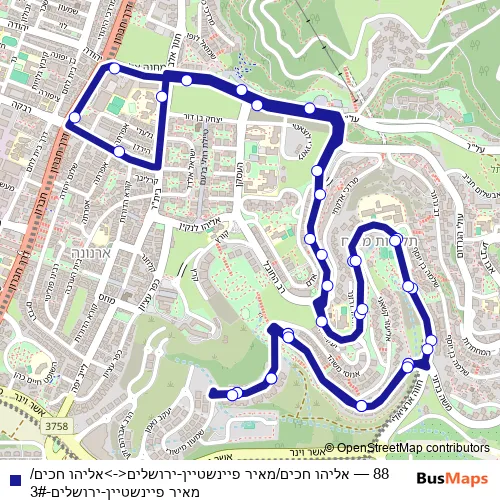 Bus 88 - אליהו חכים/מאיר פיינשטיין-ירושלים<->אליהו חכים/מאיר פיינשטיין-ירושלים-3# in Jerusalem: Stops & Timetable