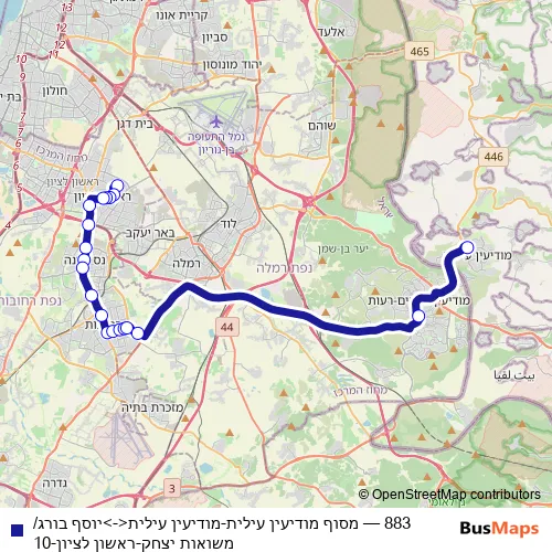 Click here to view the nearest 883 - מסוף מודיעין עילית-מודיעין עילית<->יוסף בורג/משואות יצחק-ראשון לציון-10 bus stop.