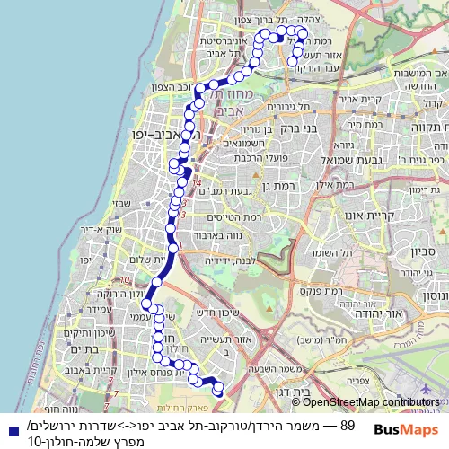 Bus 89 - משמר הירדן/טורקוב-תל אביב יפו<->שדרות ירושלים/מפרץ שלמה-חולון-10: Full Schedule in Tel Aviv