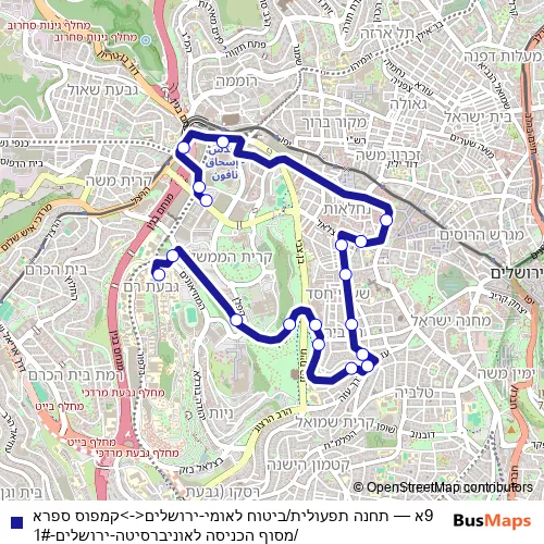 9א Bus - תחנה תפעולית/ביטוח לאומי-ירושלים<->קמפוס ספרא/מסוף הכניסה לאוניברסיטה-ירושלים-1#