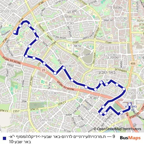 Bus 9 - ת.מרכזית/עירוניים לדרום-באר שבע<->דיקלה/מסוף י'א-באר שבע-10 in Beersheba: Stops & Timetable