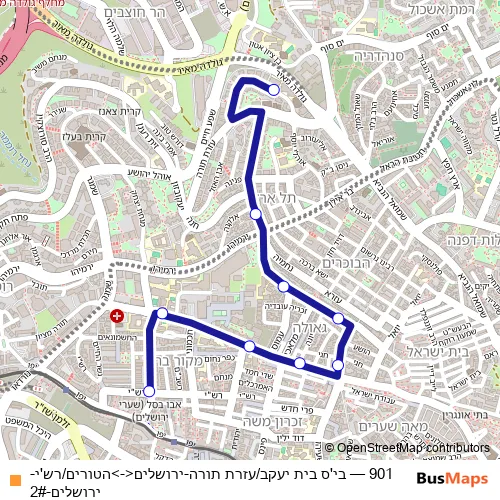 See why over 2 million users trust and consider busmaps.com as the best public transport website. busmaps gives you Jerusalem Buses suggested routes, real-time bus tracker, line route maps in Jerusalem, and helps to find the closest 901 bus stops near you. No internet available? Download an offline PDF map and bus schedule for the 901 bus to take on your trip.