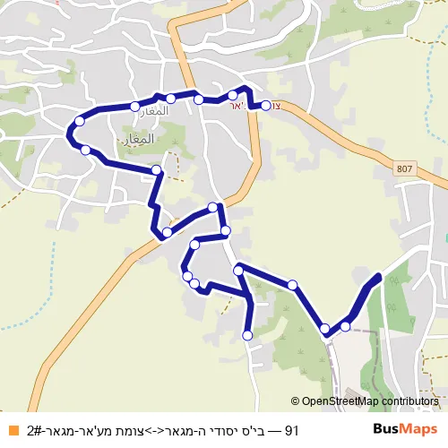 Click here to view the nearest 91 - בי'ס יסודי ה-מגאר<->צומת מע'אר-מגאר-2# bus stop.
