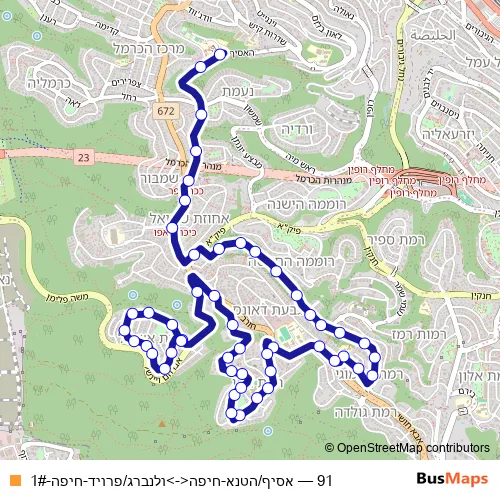 91 Bus - אסיף/הטנא-חיפה<->ולנברג/פרויד-חיפה-1#