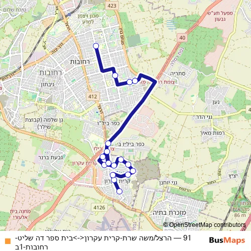 אגד 91 הרצל/משה שרת-קרית עקרון<->בית ספר דה שליט-רחובות-1ב Bus