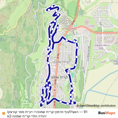 Bus 91 - האצ'ל/נוף חרמון-קרית שמונה<->בית ספר קורצק/יהודה הלוי-קרית שמונה-2א: Full Schedule in QiryatShmona
