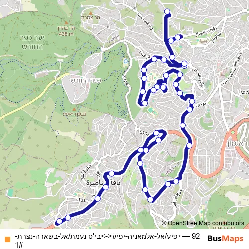 Click here to view the nearest 92 - יפיע/אל-אלמאניה-יפיע<->בי'ס נעמת/אל-בשארה-נצרת-1# bus stop.