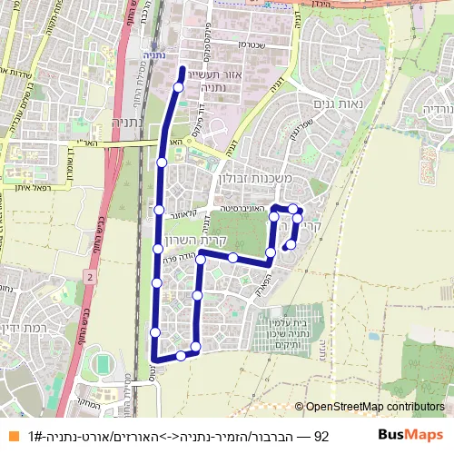 Bus 92 - הברבור/הזמיר-נתניה<->האורזים/אורט-נתניה-1# in Nordiyya: Stops & Timetable