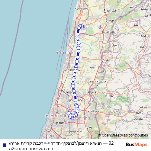 Bus 921 - הנשיא וייצמן/לבוצקין-חדרה<->רכבת קריית אריה/חנה וסע-פתח תקווה-2ה: Full Schedule in Tel Aviv