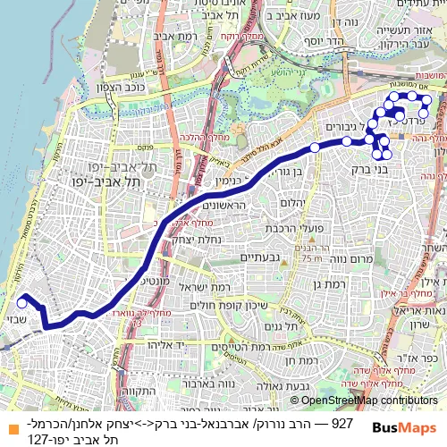 Bus 927 - הרב נורוק/ אברבנאל-בני ברק<->יצחק אלחנן/הכרמל-תל אביב יפו-127: Full Schedule in Tel Aviv