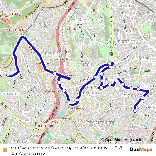 Bus 933 - צומת אורנים/פייר קניג-ירושלים<->בי'ס בויאר/תורה ועבודה-ירושלים-10 in Jerusalem: Stops & Timetable