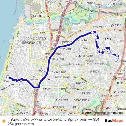 Click here to view the nearest 954 - יצחק אלחנן/הכרמל-תל אביב יפו<->קהילות יעקב/הר סיני-בני ברק-254 bus stop.