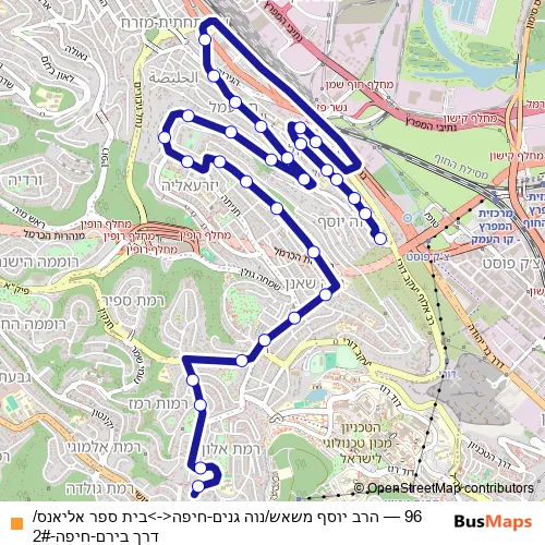 Click here to view the nearest 96 - הרב יוסף משאש/נוה גנים-חיפה<->בית ספר אליאנס/דרך בירם-חיפה-2# bus stop.