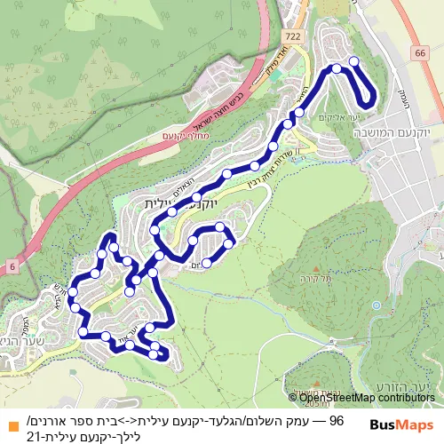 Bus 96 - עמק השלום/הגלעד-יקנעם עילית<->בית ספר אורנים/לילך-יקנעם עילית-21 Schedule in Yoqne'am 'Illit