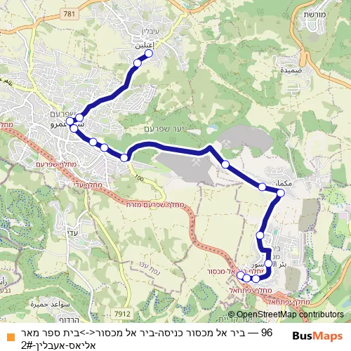 Click here to view the nearest 96 - ביר אל מכסור כניסה-ביר אל מכסור<->בית ספר מאר אליאס-אעבלין-2# bus stop.