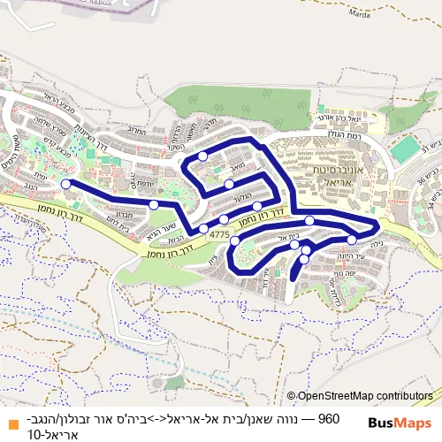 Click here to view the nearest 960 - נווה שאנן/בית אל-אריאל<->ביה'ס אור זבולון/הנגב-אריאל-10 bus stop.