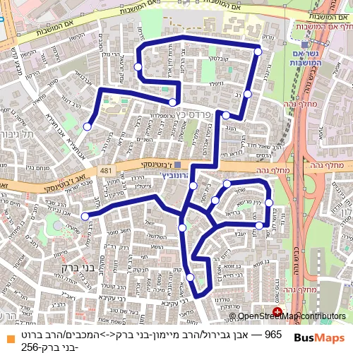 Bus 965 - אבן גבירול/הרב מיימון-בני ברק<->המכבים/הרב ברוט-בני ברק-256: Full Schedule in Tel Aviv