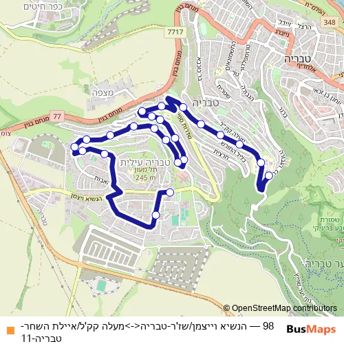 Bus 98 - הנשיא וייצמן/שז'ר-טבריה<->מעלה קק'ל/איילת השחר-טבריה-11 Schedule in Nazareth