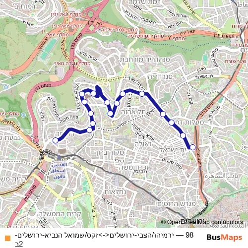 Bus 98 - ירמיהו/הצבי-ירושלים<->זקס/שמואל הנביא-ירושלים-2ב: Full Schedule in Jerusalem