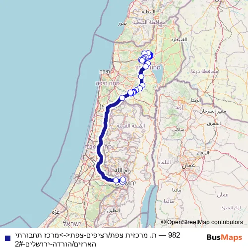 Bus 982 - ת. מרכזית צפת/רציפים-צפת<->מרכז תחבורתי הארזים/הורדה-ירושלים-2#: Full Schedule in Safed