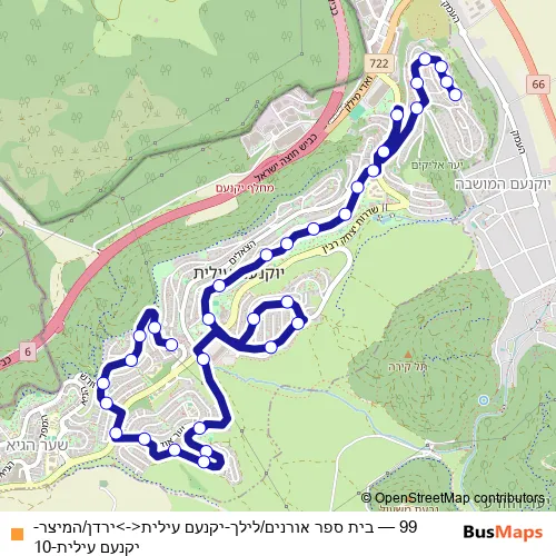 Bus 99 - בית ספר אורנים/לילך-יקנעם עילית<->ירדן/המיצר-יקנעם עילית-10 Schedule in Yoqne'am 'Illit