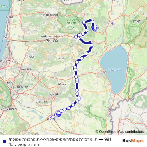 Click here to view the nearest 991 - ת. מרכזית צפת/רציפים-צפת<->ת.מרכזית עפולה/הורדה-עפולה-1# bus stop.