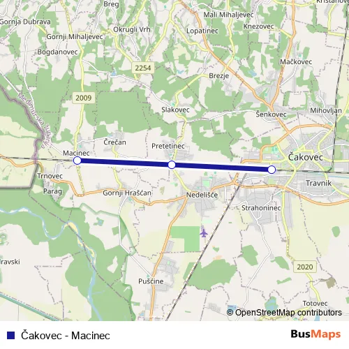 Additional information: Čakovec - Macinec has 3 stops and the total trip duration for this route is approximately 9 minutes.
