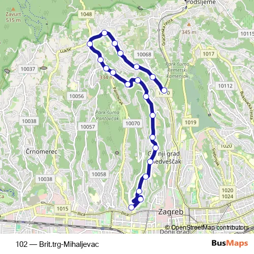 Bus 102 - Brit.trg-Mihaljevac: Full Schedule in Zagreb