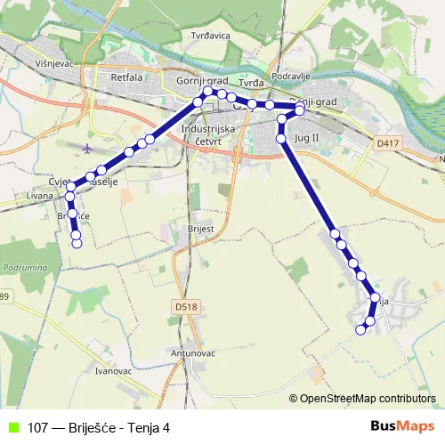 Bus 107 - Briješće - Tenja 4: Full Schedule in Osijek