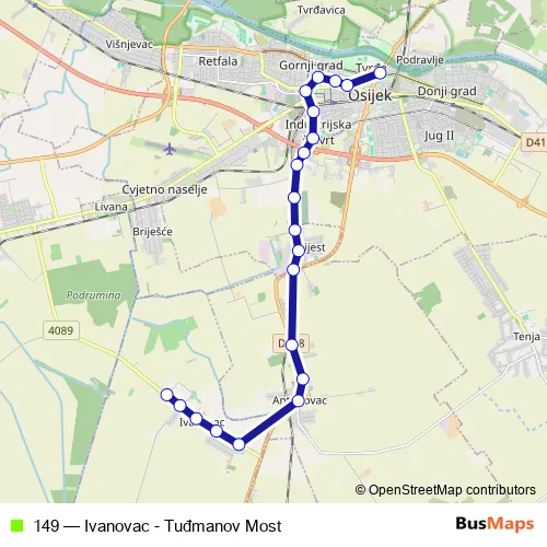 Bus 149 - Ivanovac - Tuđmanov Most in Osijek: Stops & Timetable