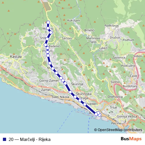 Click here to view the nearest 20 - Marčelji - Rijeka bus stop.