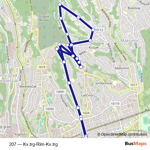 Bus 207 - Kv.trg-Rim-Kv.trg: Full Schedule in Zagreb