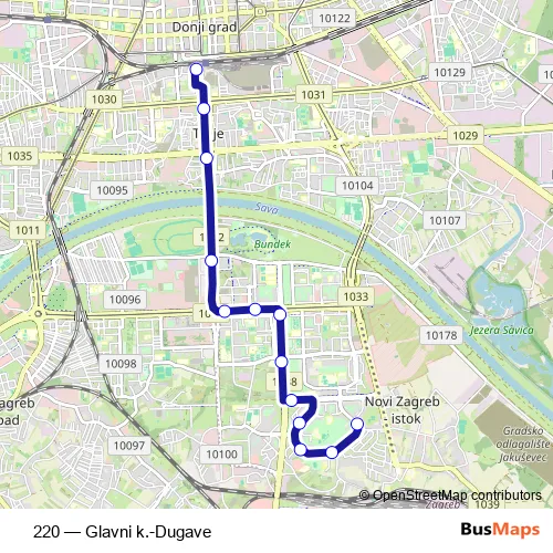 Bus 220 - Glavni k.-Dugave Schedule in Zagreb