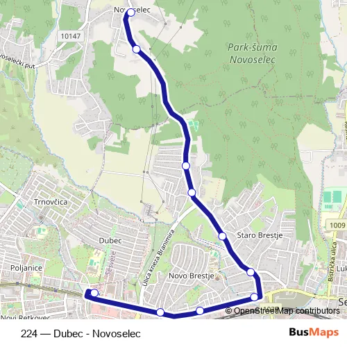 The first stop of the 224 bus route is Novoselec and the last stop is Dubec. 224 (Dubec - Novoselec) is operational during svakodnevno.