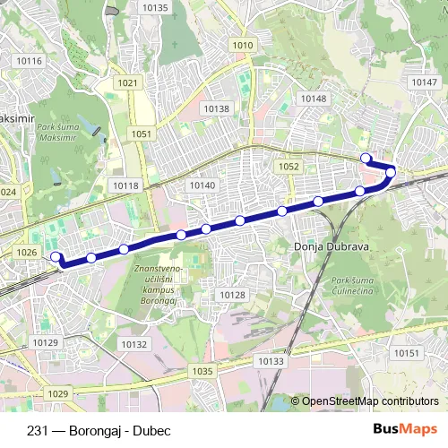 The first stop of the 231 bus route is Dubec and the last stop is Borongaj. 231 (Borongaj - Dubec) is operational during svakodnevno.