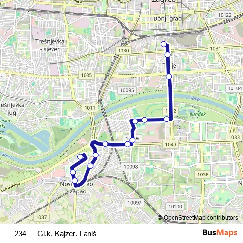 Bus 234 - Gl.k.-Kajzer.-Laniš in Zagreb: Stops & Timetable