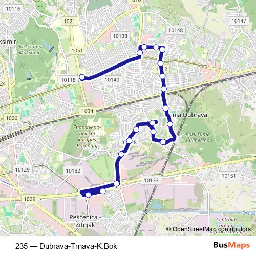 Click here to view the nearest 235 - Dubrava-Trnava-K.Bok bus stop.