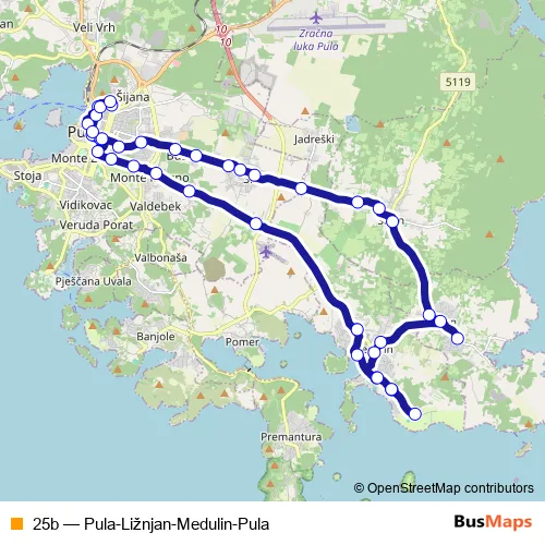 Click here to view the nearest 25b - Pula-Ližnjan-Medulin-Pula bus stop.