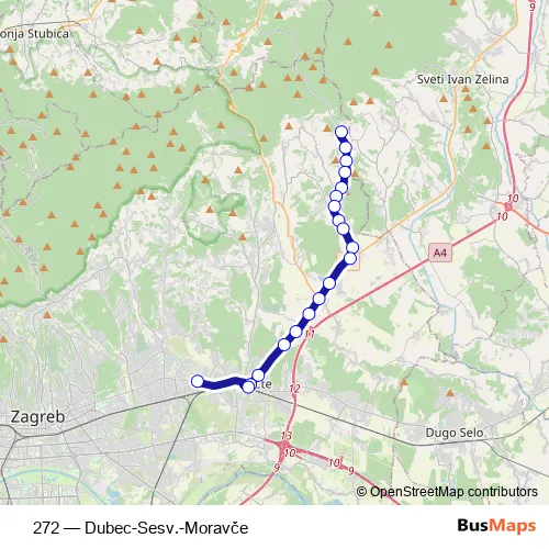 The first stop of the 272 bus route is Moravče-Benkova and the last stop is Dubec. 272 (Dubec-Sesv.-Moravče) is operational during svakodnevno.