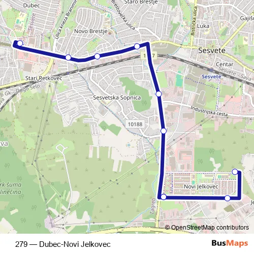Bus 279 - Dubec-Novi Jelkovec in Zagreb: Stops & Timetable