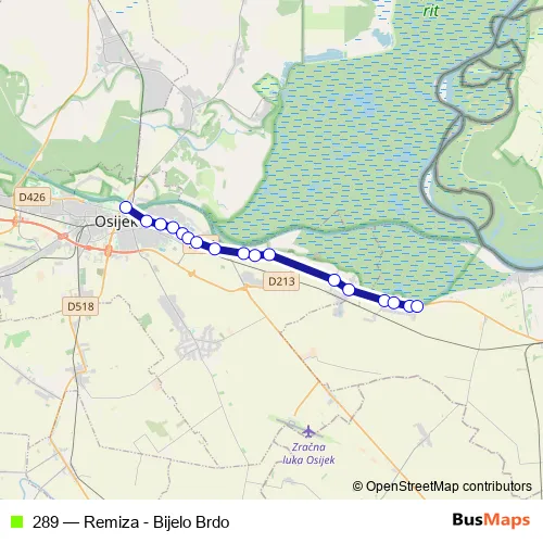 Bus 289 - Remiza - Bijelo Brdo in Osijek: Stops & Timetable