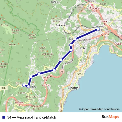 Click here to view the nearest 34 - Veprinac-Frančići-Matulji bus stop.