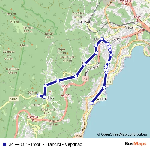 See why over 2 million users trust and consider busmaps.com as the best public transport website. busmaps gives you Opatija Buses suggested routes, real-time bus tracker, line route maps in Opatija, and helps to find the closest 34 bus stops near you. No internet available? Download an offline PDF map and bus schedule for the 34 bus to take on your trip.