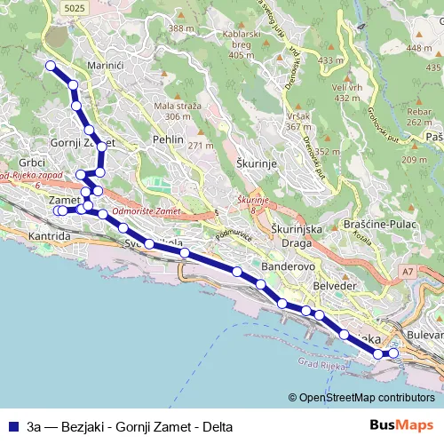 The first stop of the 3a bus route is Delta and the last stop is Bezjaki. 3a (Bezjaki - Gornji Zamet - Delta) is operational during radnim danima.