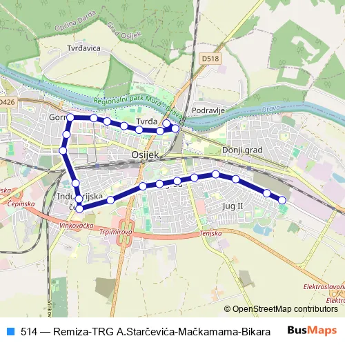 See why over 2 million users trust and consider busmaps.com as the best public transport website. busmaps gives you Osijek Trams suggested routes, real-time bus tracker, line route maps in Osijek, and helps to find the closest 514 tram stops near you. No internet available? Download an offline PDF map and bus schedule for the 514 tram to take on your trip.
