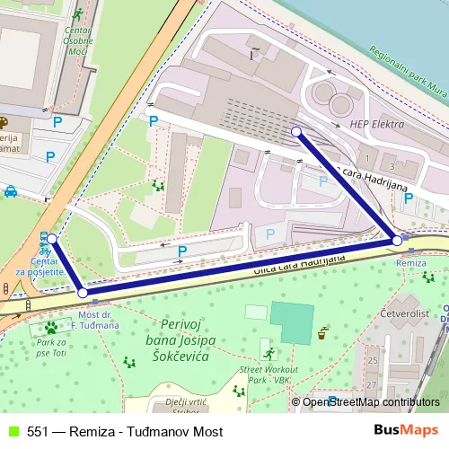 Click here to view the nearest 551 - Remiza - Tuđmanov Most bus stop.